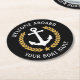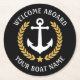 Welcome Aboard Boat Name Anchor Gold Laurel black Round Paper Coaster