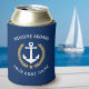 Welcome Aboard Boat Name Anchor Gold Laurel Navy Can Cooler