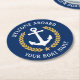 Welcome Aboard Boat Name Anchor Gold Laurel Navy Round Paper Coaster