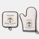 Welcome Aboard Boat Name Anchor Gold Laurel Star Oven Mitt & Pot Holder Set