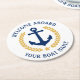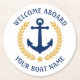 Welcome Aboard Boat Name Anchor Gold Laurel white Round Paper Coaster