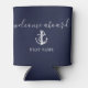 Welcome Aboard Boat Name Navy Blue Can Cooler