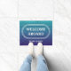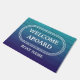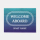 Welcome guests to your boat with this stylish faux wood nautical welcome mat featuring the roped words, Welcome Aboard, followed by your boat's name. Text is fully customizable. Shown is the small doormat. From Heard_.