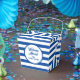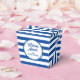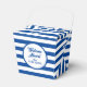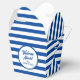 Welcome aboard favour boxes for boat trips, sailing excursions, on the water wedding parties and more. Personalized box for thanking guests. Custom message on the side. Modern line print with sailboat silhouette. Customizable background colour. Nautical maritime theme design. Bucket shape with handle.