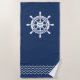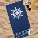 This stylish beach towel features a classic ship's wheel design on a deep navy blue background. Made from soft, absorbent microfiber for ultimate comfort and quick drying. Perfect for the beach, pool, or lake.