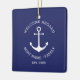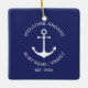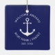 Custom Boat name or Family name, Welcome Aboard, nautical navy blue anchor white Christmas Ceramic Ornament