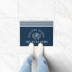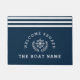 boat mat with blue stripes and personalized name detail and nautical elements The colour and text are editable.
