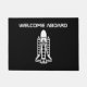 Welcome aboard space rocket launch pad Doormat . Funny home decor for space enthusiasts. Personalizable text template. Add your own family name or fun quote.