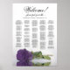 This gorgeous wedding seating chart features a photo of a long-stemmed amethyst purple coloured rose lying on its side reflecting in a pool of water with waves and ripples. The main title reads "Welcome!" with subtitle reading "please find your table" in elegant lacy script calligraphy. There is space for the up to 200 names with the names of the couple and wedding date below. Wonderful way to help your guests find their tables while making your reception more beautiful.