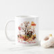 Autumn and Fall scenery with old distressed haunted farm house and ghost set against golden rolling hills and autumn trees with yellow sun or moon with orange clouds and umbrella, kid in Halloween costume, Scary horror movie cinema screen, popcorn, movie tickers, harvest pumpkins, candy apples, mushrooms, fall leaves, football, fall and winter sweater and Wild Thanksgiving Turkey. Text reads: Welcome Autumn