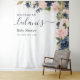 This design features a navy blue and blush pink floral watercolor shower backdrop that will be perfect for some photo ops.
