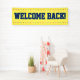 Say Welcome Back to customers on the occasion of your business reopening. Blue color wording.