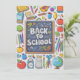 Colourful crayon line drawings of school utensils on a light background give the pupil a warm welcome. The colourful strokes bring joy and vibrancy to your school day as they bring notebooks, pencils, rulers and backpacks to life. Welcome back to school!