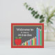 This welcome back to school postcard features a chalkboard theme accented with coloured pencils and a red apple. This design is perfect for any elementary grade. Personalize with a custom message on the backside.