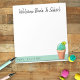 If you are a teacher or a parent preparing for back to school gift ideas for the teacher, here's a fun idea. This note pad features a yellow flowering potted cactus with the "Welcome Back to School" message at the top and a template text for a name. Personalize the top message and name, remove any text or click customize to select a typeface style, size, and colour you like.