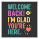 Celebrate a joyful return with our "Welcome Back! I'm Glad You're Here" t-shirt! This vibrant and cheerful tee is the perfect way to create a positive and inclusive atmosphere. Whether you're a teacher greeting your students on the first day of school, a team leader welcoming back your colleagues to the office, or simply want to spread a message of kindness, this shirt is for you. Its colourful design and heartfelt message make it an unforgettable teacher appreciation gift or a wonderful back-to-school outfit for students and educators alike.