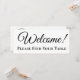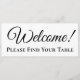 This banner card is designed to be part of a seating chart display. The simple black and white design features elegant script lettering reading Welcome Please find your table!