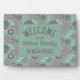 This custom coastal Welcome to the beach house sign is aqua, plum, mauve and ivory with a seaside pattern of seashells, sand dollars and starfish. The family name monogram can be personalized, and the "beach house" typography can be left as is, or changed to "kitchen", or "yacht" or "cottage", or anything else that applies. Also, you can change the word Welcome if you wish.