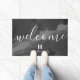 This stylish welcome mat features a dark grey, almost black, watercolor background with crisp white fonts for a sleek black and white look. The word "Welcome" is beautifully showcased in large, elegant script typography, creating a warm and inviting entrance to your home. Below, the family name and initial are displayed, with the initial set in a classic serif font that adds a touch of timeless sophistication. The best part is that you can change the background colour in order to be able to change the overall colouring of the watercolor. Perfect for making a chic first impression at your doorstep, this minimalist welcome mat seamlessly blends into any modern home décor. It’s an ideal gift for housewarmings, newlyweds, or Christmas, offering a personalized touch that’s both practical and elegant. Welcome Black and White Personalized Family Name Doormat Watercolor Housewarming Or Newlywed Gift