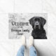 Welcome to the "Your Family Name" Home, or change to the cottage. A dog themed welcome mat for the family who loves their dog as part of their family. The design features a gorgeous black lab. Personalize your family name.