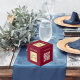 Welcome business logo QR code burgundy menu table Cube