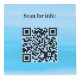 For hotel rooms, restaurant tables, rental properties.  Personalize and add your business logo, and space for two QR codes.  Blue ocean as background, Black text.