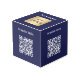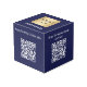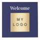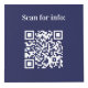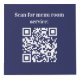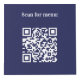 For hotel rooms, restaurant tables, rental properties. Personalize and add your business logo, and space for 4 QR codes. Navy blue background, white text.