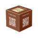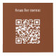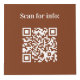 For hotel rooms, restaurant tables, rental properties. Personalize and add your business logo, and space for 4 QR codes. Brown earth coloured background, white text.