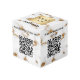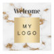 For hotel rooms, restaurant tables, rental properties. Personalize and add your business logo, and space for 4 QR codes. White and golden marble print as background, black text.
