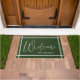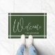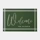 Welcome Calligraphy Script Last Name Forest Green Doormat