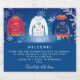 A label for a fun holiday season and Christmas parties and dinners. This label is ment to go on the back of a bottle toghether with our matching front label. But can also be used as a front label. A blue background with large white snowflakes, crystals. Decorated with ugly red, white, orange and blue xmas sweaters Personalize and a title, your welcome greetings to your guests and your name. The names are written with a trendy hand lettered style script.