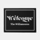 Design features Welcome in beautiful white calligraphy script. Customize one line of text to include your family name or address in a coordinating font. Great housewarming gift! Background colour easily changed to colour of your choice in the Zazzle design tool section!