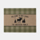 Welcome Family Cabin Moose Pine Green Plaid Burlap Doormat