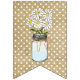 Rustic country bunting flags banner - "Welcome Friends". Choose your colour with white polka dot background. Vintage mason jars with white daisy flowers. Personalize it. Perfect for a country barn party, rustic weddings, baby shower or harvest festivals. To add coordinating products - Please visit my store "The Hungarican Princess" at www.zazzle.com/hungaricanprincess*. Look in my "Burlap Look" collection category.