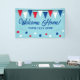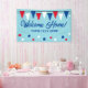 Welcome Home banner sign with colourful bunting flags garland. Add your own text or welcome home text. Cheerful design with elegant typography template. Perfect for welcome home parties, gatherings, reunion, new baby, work and other celebrations. Personalized decorations for festive party.
