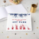Welcome your family member home from their service with these USA decorative guest book in red, white and blue stars and stripes with the greeting, showing the service squadron name and date in a stencil stamp lettering.