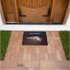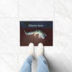 Digital design of a rainbow colored gecko in the desert at night. The words welcome home are written on top.