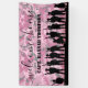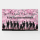 Custom girly military welcome home banner featuring a pink camouflage background, pink glitter, silhouettes of a soldiers, the text "welcome home" in a calligraphy script, and the soldiers name.