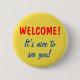This button design features the messages "WELCOME!" and "It’s nice to see you!". It could perhaps be used by the host of a party or some other event while greeting the guests.