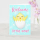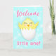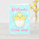 This new baby congratulatory card features an adorable baby chick emerging from an egg with the words Welcome little one. This card is gender neutral so can work for a new baby girl or boy.