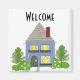 A cute 'welcome'. Great for new neighbours or for your own home. A little blue house with a grey roof. Trees and bushes on either side!