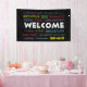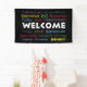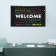 A fun design that says welcome in many languages like Spanish, Japanese and French in a variety of colours like white, yellow and red against a black background