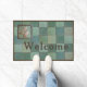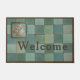 This Welcome mat is perfect for your Craftsman Bungalow. It features craftsman tile often put on fireplaces in Bungalows. The design is gingko leaf tile with metallic copper and green as well as green field tile.