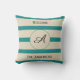 A beige and teal striped decor pillow, enter your family initial and name on the front and back using the personalize this template field on the right. Other styles available.