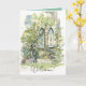 A soft and pretty "Welcome" greeting card for new members of your church featuring ivy happily growing around a set of arched windows of a lovely church hand drawn with ink and painted with watercolor. On the inside is a coordinating shade of green, a white cross, and text you can edit to fit your needs.