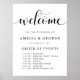 This is a beautiful portrait poster welcome order of events wedding sign featuring script text.