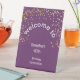 Her 40th Welcome Sign: Gold glitter/purple pedestal with custom name & date. Sturdy stand and luxury milestone decor.