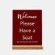 Welcome Please Have a Seat Dark Red and White Text Acrylic Sign