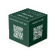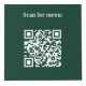 For hotel rooms, restaurant tables, rental properties. Personalize and add your business logo, and space for 4 QR codes. Dark green background. White text.