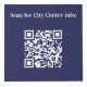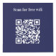 For hotel rooms, restaurant tables, rental properties. Personalize and add your business logo, and space for 4 QR codes. Navy blue background, white text.